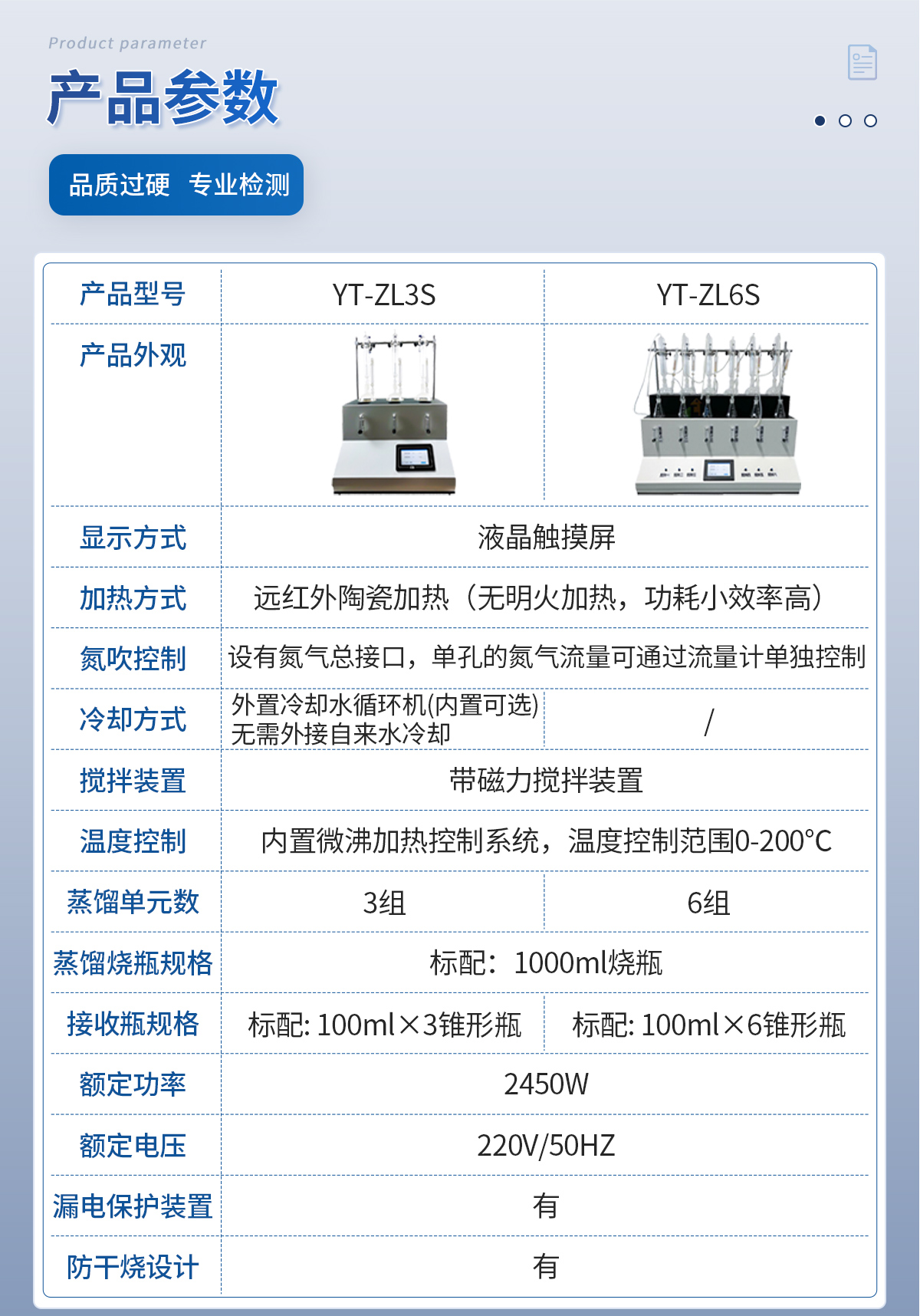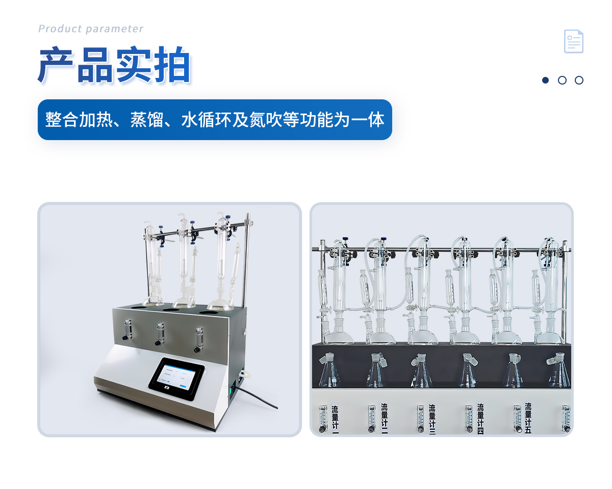 主要原理是根據藥典中所提供的檢測方法,將中藥材以蒸餾法進行處理,樣品中的亞硫酸鹽系列物質加酸處理后轉化為二氧化硫后,隨氮氣流帶入到含有雙氧水的吸收瓶中,雙氧水將其氧化為硫酸根離子,采用酸堿滴定法測定,計算藥材及飲片中的二氧化硫殘留量。本產品在嚴格遵循藥典要求的基礎上,整合加熱,蒸餾,水循環(huán)及氮吹等功能為一體,可同時提供3-5個樣品(空白樣,平行樣)的處理,從而極大的提高了檢測數據的精度和減少了工作時間。
