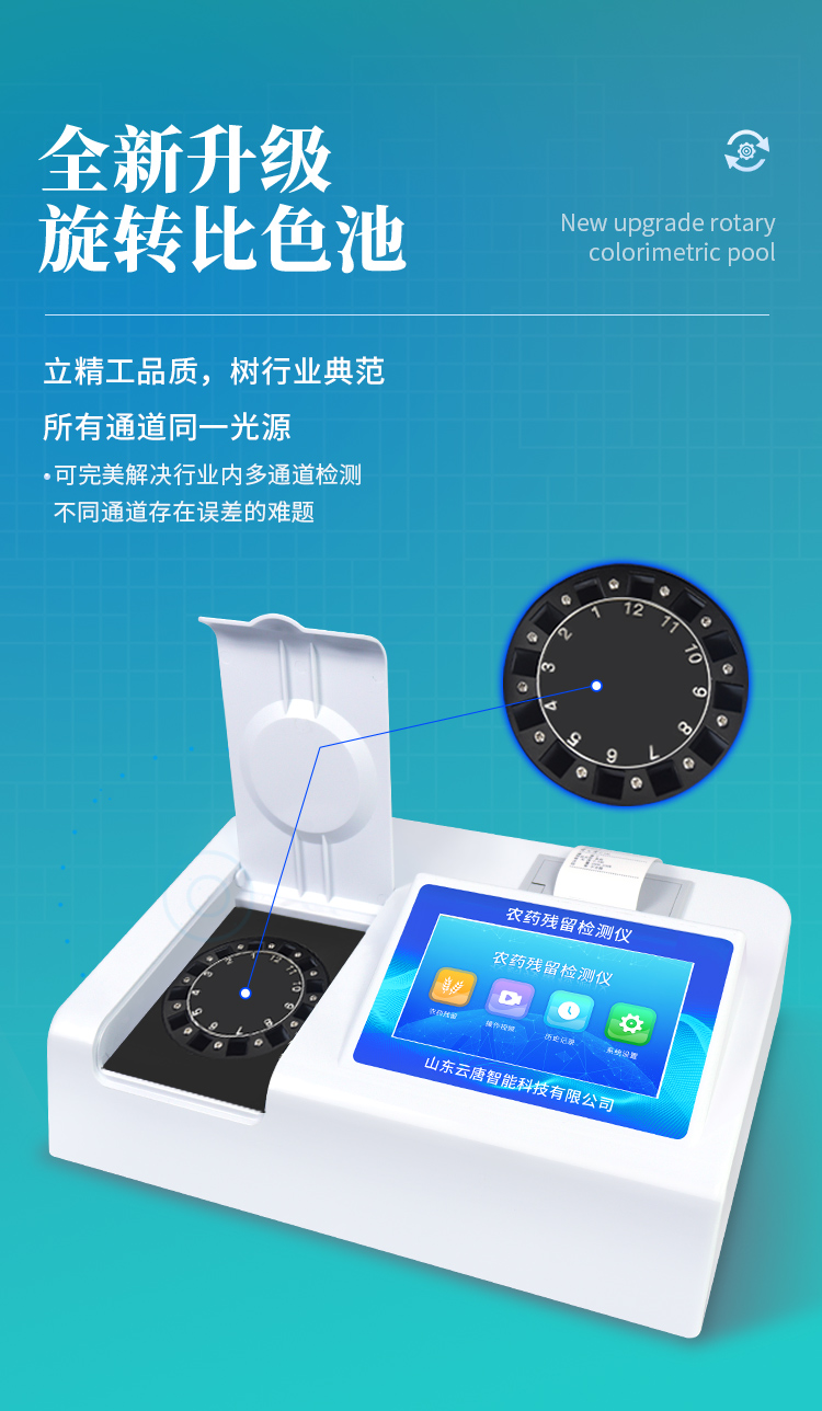 旋轉比色農殘儀12個檢測通道,可以同時測試多個樣品,循環檢測,即放即檢,每個樣品由程序控制分別獨立工作,不會互相干擾。 熱線:133-7109-8225