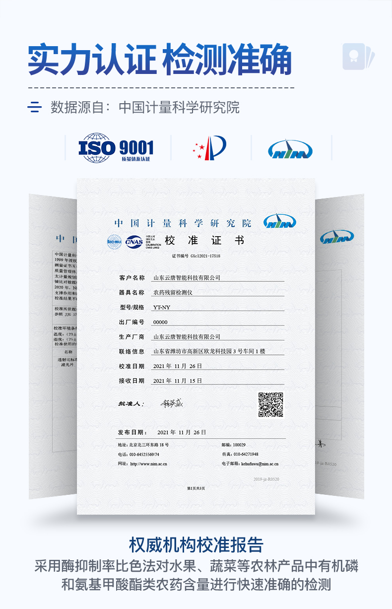 檢測標(biāo)準(zhǔn):依據(jù)國家標(biāo)準(zhǔn)方法(GB/T5009.199-2003)以及世界衛(wèi)生組織WHO、世界糧農(nóng)組織FAO殘留農(nóng)藥檢測標(biāo)準(zhǔn)、世界環(huán)境保護(hù)局EPA參照攝入量等要求來設(shè)計。采用酶抑制率比色法對水果、蔬菜等農(nóng)林產(chǎn)品中有機(jī)磷和氨基甲酸酯類農(nóng)藥含量進(jìn)行快速準(zhǔn)確的檢測。