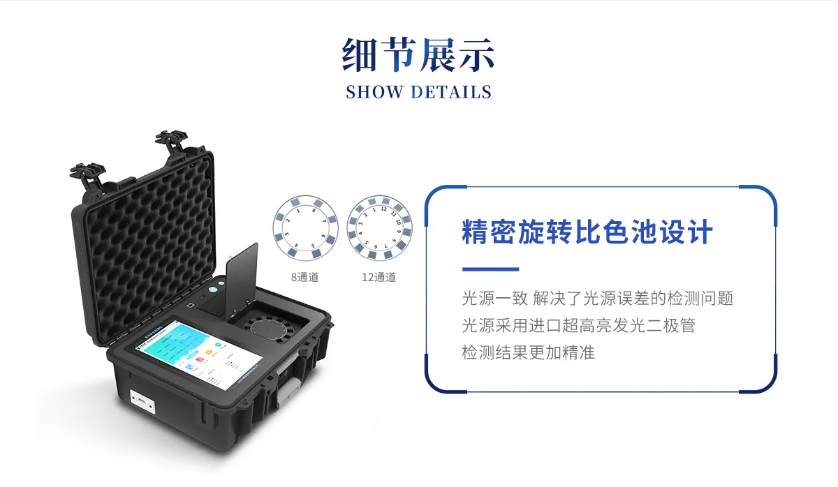 *①儀器采用精密旋轉(zhuǎn)比色池設(shè)計(jì),使用光源一致,可以解決各通道間由于光源誤差帶來的檢測結(jié)果誤差問題,檢測結(jié)果更加精準(zhǔn),1-12通道間誤差千分之一。