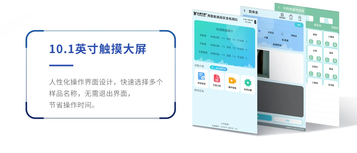 2、儀器功能包括:分光光度模塊、膠體金檢測模塊、新型農(nóng)殘檢測模塊、數(shù)字化管理模塊、無線通訊模塊等,可以滿足同一軟件下實(shí)現(xiàn)所有檢測項(xiàng)目的檢測,并在同一窗口展示檢測結(jié)果。