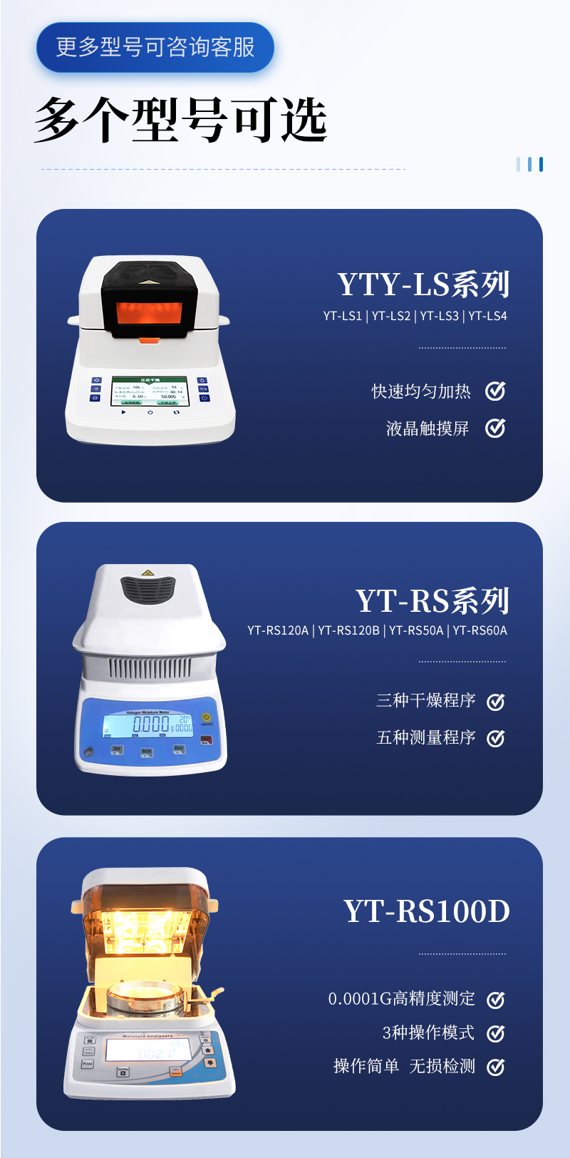 | 水分可讀精度 Moisturereadability | 0.02% | 0.02% | 0.01% | 0.01% |