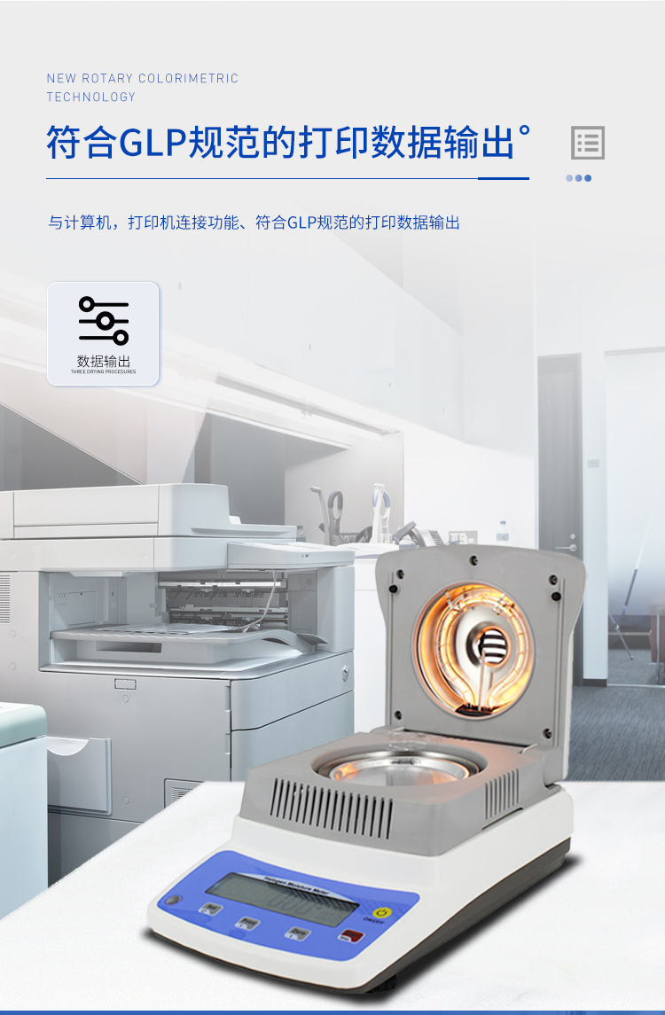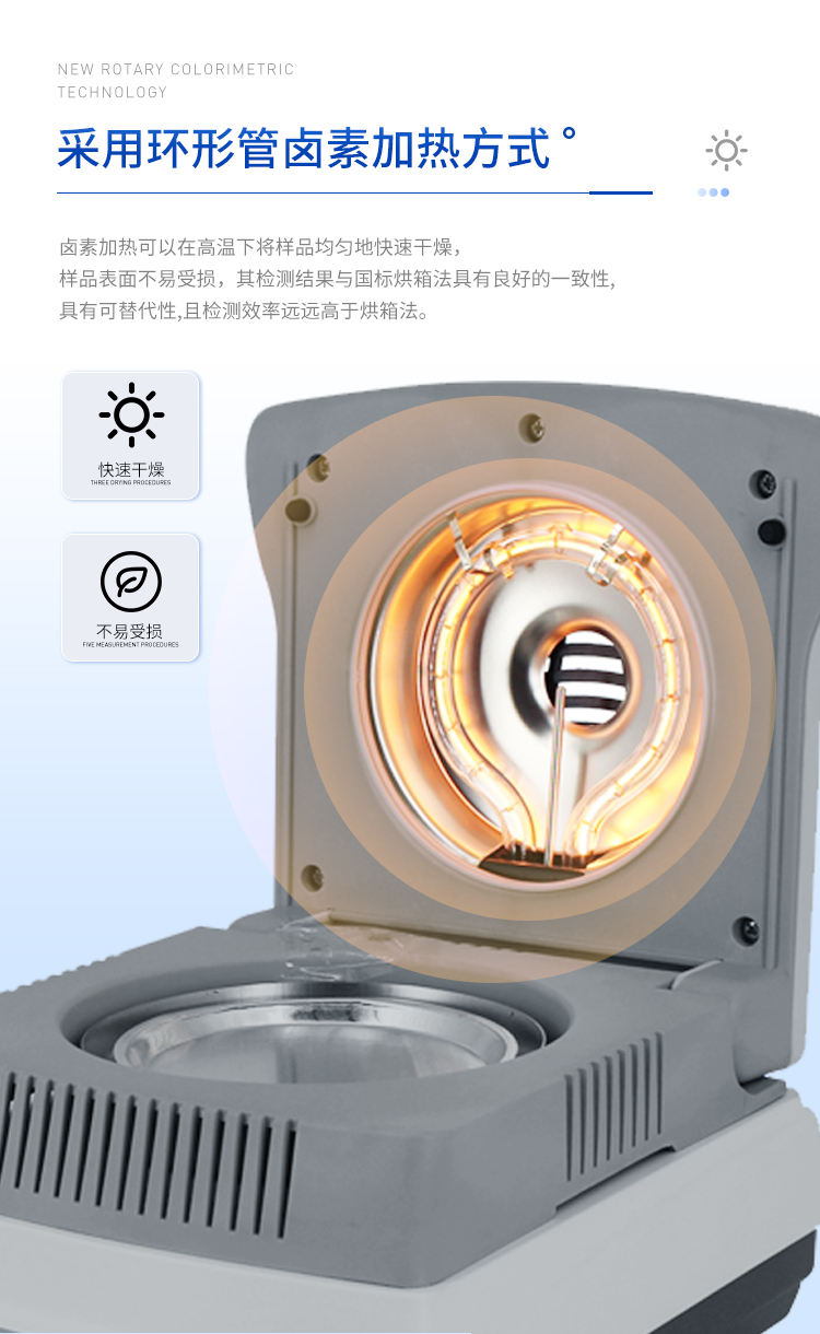 環(huán)狀的鹵素?zé)舸_保樣品得到均勻加熱,操作簡便、測(cè)量準(zhǔn)確。水分測(cè)定儀在測(cè)量樣品重量的同時(shí),儀器采用環(huán)形管鹵素加熱方式,快速干燥樣品,在干燥過程中,水分儀持續(xù)測(cè)量并即時(shí)顯示樣品丟失的水分含量%,干燥程序完成后,*終測(cè)定的水分含量值被鎖定顯示。與國際烘箱加熱法相比,鹵素加熱可以在高溫下將樣品均勻地快速干燥,樣品表面不易受損,其檢測(cè)結(jié)果與國標(biāo)烘箱法具有良好的一致性,具有可替代性,且檢測(cè)效率遠(yuǎn)遠(yuǎn)高于烘箱法。智能化操作,一般樣品只需幾分鐘即可完成測(cè)定。該儀器操作簡單,測(cè)試準(zhǔn)確,顯示部分采用液晶顯示屏-使屏幕更加清晰明亮,示值清晰可見,分別可顯示水分值,樣品初值,終值,測(cè)定時(shí)間,溫度初值,*終值等數(shù)據(jù),并具有與計(jì)算機(jī),打印機(jī)連接功能、符合GLP規(guī)范的打印數(shù)據(jù)輸出。